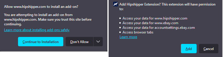 4. After you log in, leave the eBay page open and return to the Hipshipper page, click to download the extension (Chrome or Firefox)